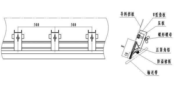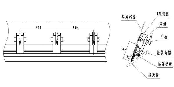 2、密封裙板高度可根據導料槽的實(shí)際尺寸適當調整。